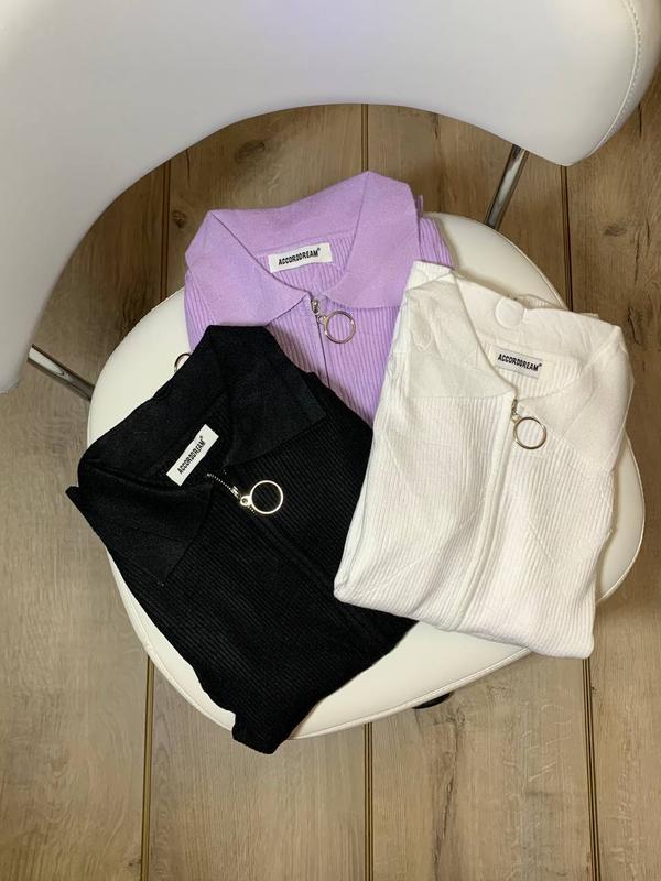Кофтинка🫣 Мод.90 Цена: 700 грн 😍 Тканина: ангора рубчик Цвета: черный 🖤белый 🤍и лаванда 💜 🎀Размеры: 42-46 🎀 Стильная кофта Ангора рубчик с полной молнией и аккуратным воротником 🤗. Модель выполнена из мягкой эластичной ангоры, приятной к телу и комфортной в носке. Благодаря фактурному рубчику и приталенному фасону отлично подчеркивает силуэт 👣. Идеальный вариант на каждый день и для стильных образов🤌. алиос