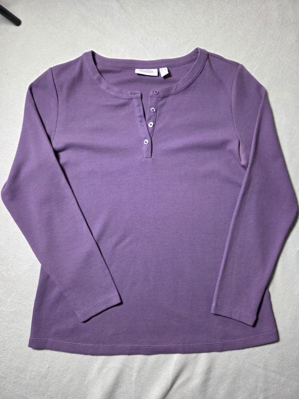 Дизайн: лонгслив с круглым вырезом и планкой на 4 пуговицах. Имеет длинный рукав и фактуру ткани рубчик, что добавляет образу объема и уюта. Бренд: d&co. Размер: S/M. Сияет как легкий оверсайз на S или по фигуре на M. Цвет: Насыщенный лавандовый. Очень красиво освежает цвет лица. Материал: 60% хлопок, 40% полиэстер. Ткань дышащая, мягкая, хорошо держит форму и не требует сложного ухода. Стан замечательный, эта вещь готова стать частью вашего стиля! Для уточнения замеров или оформления заказа — пишите мне в частные уведомления. Быстро отвечать и отправляю удобным для вас способом!