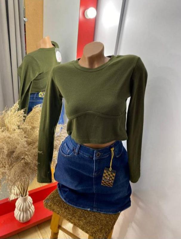 укорочена кофта в рубчик по фігурі розмір універсальний (найкраще S,M), довжина 37см., півобхват грудей 38см., низ 35см., довжина рукава від горловини 67см., гарно тягнеться та сідає по фігурі. в наявності кольори.
