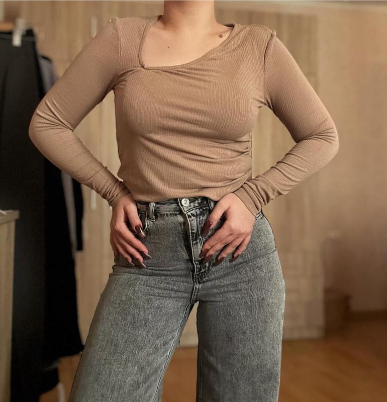 Лонг з цікавим вирізом. В рубчик В розмірі S