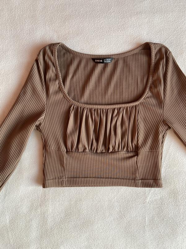 кроп-топ SHEIN у рубчик з квадратним вирізом та довгими рукавами, зібраний спереду Розмір: xs-s