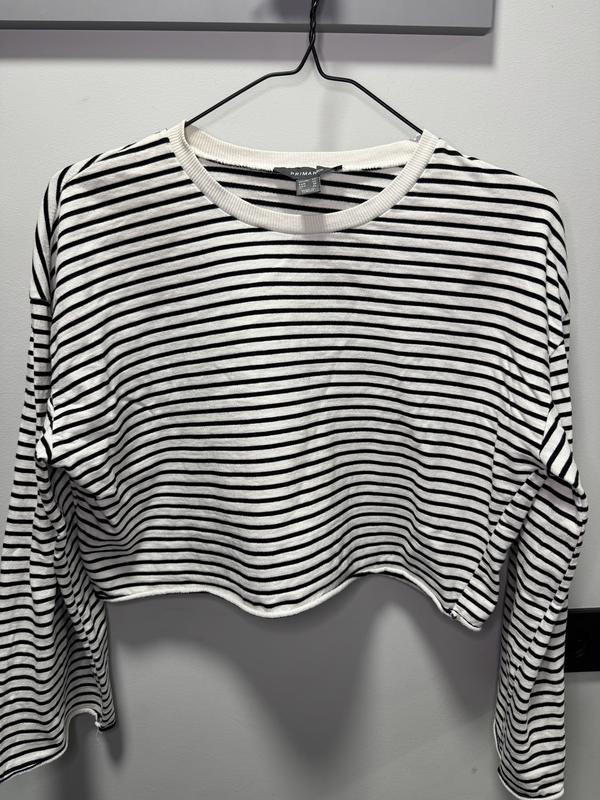 Чорно-білий смугастий укорочений лонгслів, бренд Primark, розмір M, без дефектів