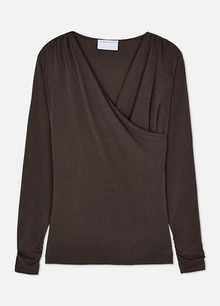 Стильний жіночий лонгслів Primark у красивому відтінку гіркого шоколаду. Колір однорідний (камера дещо спотворює). Стан ідеальний, без будь-яких нюансів. Приємний і м'який трикотаж, тягнеться. Склад: 64% модал, 36% поліестер. Розмір XS Довжина - 57 см ПОГ - 38-43 см Рукав - 60 см