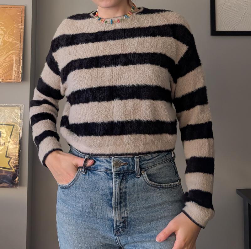 Кофтинка в смужку Синтетика, но приятная к телу Длж 45 Ширина по проймам 53 Рукав 54
