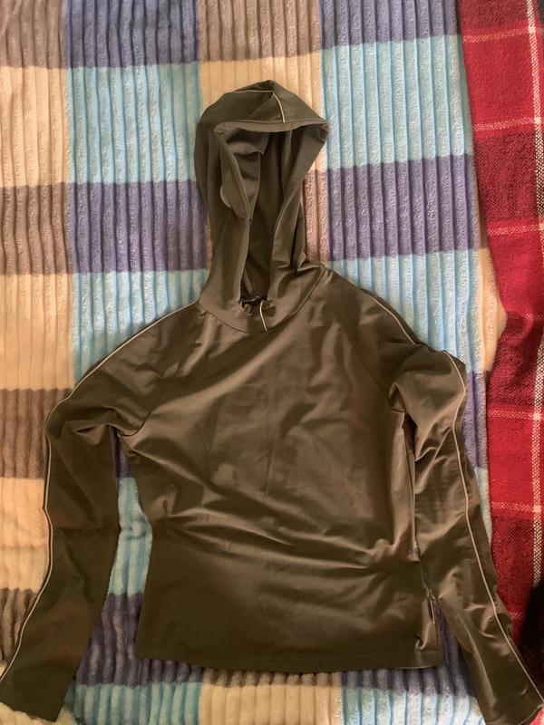 Розмір s Спортивна кофта, має білі смужки на рукавах З капюшоном