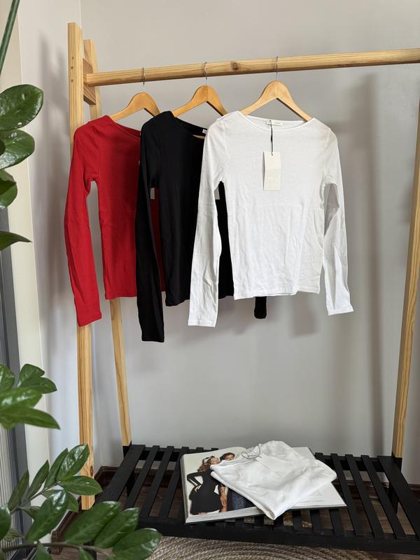 В наявності ✔️ Розмір S-червоний ✔️ чорний S,M✔️ Білий S,L✔️ REGULAR FIT - КРУГЛИЙ ВИРІЗ - ЗВИЧАЙНА ДОВЖИНА - ДОВГ РУКАВА Футболка з еластичної та гнучкої трикотажної тканини з компактним, мʼяким і непрозорим переплетенням. Круглий виріз і довгі рукави. Прямий поділ.