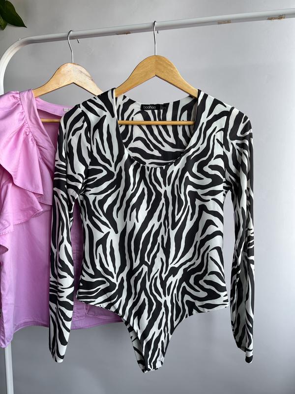 Боді з гладенької тканини бренду Bohoo , спереду подвійна тканина Розмір: М Стан ідеальний Заміри: Довжина 67, пог 40, плечі 34, рукава 62