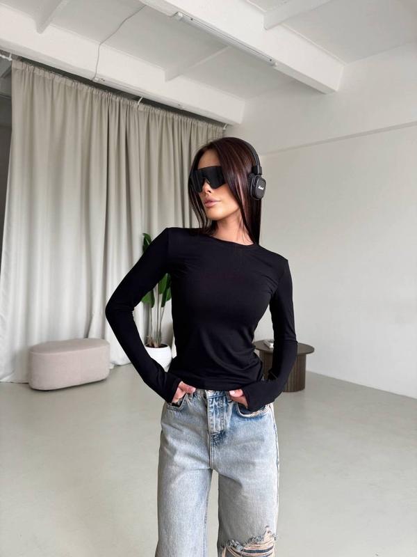 Лонгслів🥰 Мод: 4942-354 Розмір: 42-46 Тканина: віскоза Колір: чорний, білий, меланж, шоколад, бордо, темно синій Ціна- 609 грн🔥