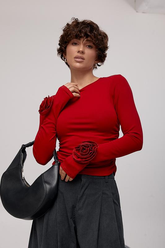 ЗАМІРИ ВИРОБУ Довжина переду виробу, см 56см Довжина рукава від горловини, см 76см Ширина під проймами рукавів (над грудьми), см 40см Довжина рукава по внутрішньому шву, см 54см РОЗМІРНА СІТКА ХАРАКТЕРИСТИКА ТОВАРУ Країна Китай Тканина Трикотаж Склад тканини 90% бавовна, 10% еластан Параметри моделі 86*60*92 зріст 173 Розмір на фото ONE SIZE ОПИС АРТ. 1365 Еластичний лонг із трояндами — виразна та жіночна модель, яка привертає увагу деталями. Приталений крій красиво підкреслює фігуру, а еластична тканина м’яко облягає тіло, забезпечуючи комфорт протягом усього дня. Кругла горловина робить образ гармонійним і збалансованим. З боків лонг доповнений драпіруванням, яке створює ефектні складки та додає силуету динаміки. Довгі рукави мають отвір для пальчика, що виглядає стильно й додає сучасного акценту. Особливу увагу привертає декоративна троянда, пришита на рукаві, — саме вона робить модель оригінальною та акцентною. Лонг чудово поєднується з джинсами, спідницями або штанами з високою посадкою, доповнюючи як повсякденні, так і більш ошатні образи.