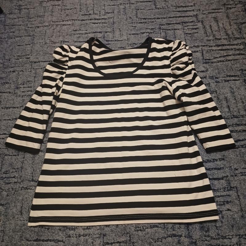 базова кофтина в смужку пряма,не приталенна рукав ниже локтя с интересной отделкой размер ХЛ, может быть и на 2ХЛ