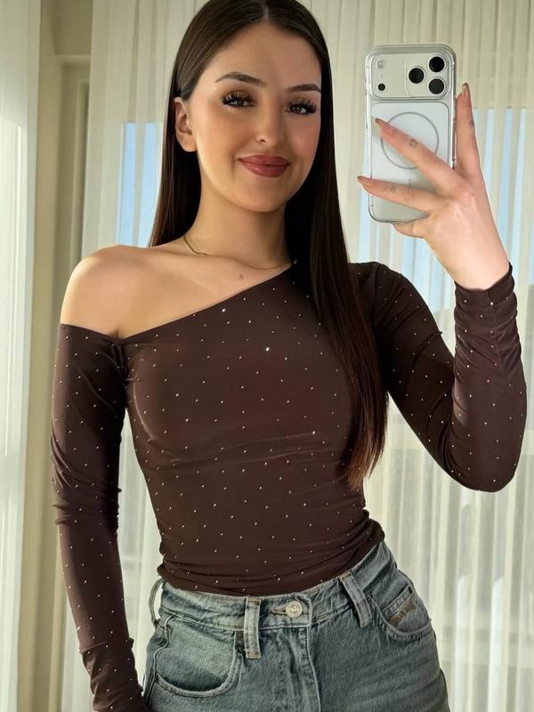 Кофта Модель 1482 Розміри s m l Виробник Туреччина 🇹🇷 Кольори: чорний, шоколад Кофта має елегантний та сучасний вигляд. Вона оздоблена дрібними блискучими камінцями, які рівномірно розташовані по всій поверхні та надають образу святкового акценту. Модель асиметрична — з одним відкритим плечем, що підкреслює лінію ключиць і виглядає дуже жіночно. Кофта приталеного крою, добре облягає фігуру, з довгим рукавом, виготовлена з еластичної тканини, що забезпечує комфорт при носінні. Ідеально підходить як для вечірніх виходів, так і для стильних повсякденних образів. Тканина поліестер+еластан Заміри: S НОГ - 42 см (тягнеться +4-5см) Довжина - 53 см Довжина рукава від горловини - 73 см M НОГ - 44 см (тягнеться +4-5см) Довжина - 54 см Довжина рукава від горловини - 73 см L НОГ - 46 см (тягнеться +4-5см) Довжина - 55 см Довжина рукава від горловини - 73 см Похибка вимірювання +~1см