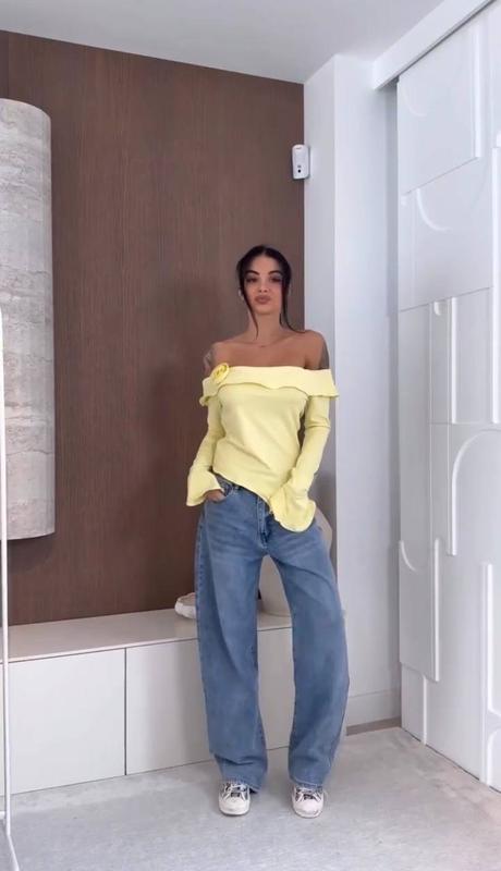Лонгслів Модель 83195 Ціна: 650 грн Колір : жовтий, чорний, білий , пудра,беж Розмір: 42-44; 46-48; 50-52 Ткань : мікродайвінг Розочка на булавці. Лонг з асиметричною передньою частиною, волони які додають легкість і романтичність в образ.