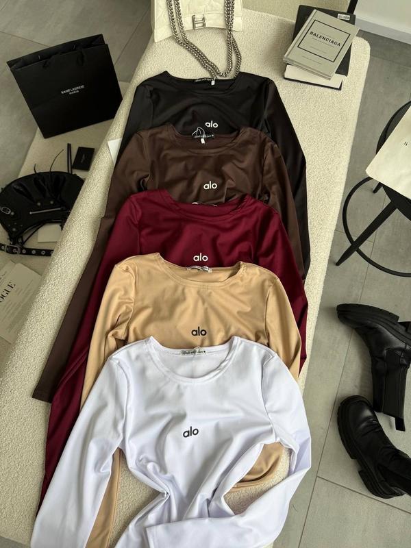 # 606 Стильний базовий лонгслів з надписом та вирізом під пальчик🥰Ідеально сідає по фігурі, не просвічується та чудово поєднується як зі спортивним, так і з повсякденним стилем. Велика палітра кольорів на будь-який смак 🥰 🔹 Розмір: 42–46 (єдиний) 🔹 Тканина: мікродайвінг 🔹 Кольори: Білий, Барбі, Бежевий, Бордо, Червоний, Шоколад, Хакі,Електрик,світлий Сірий, Графіт, Чорний
