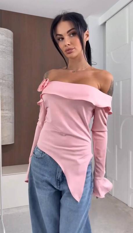 Лонгслів Модель 83195 Колір : жовтий, чорний, білий , пудра,беж Розмір: 42-44; 46-48; 50-52 Ткань : мікродайвінг Розочка на булавці. Лонг з асиметричною передньою частиною, волони які додають легкість і романтичність в образ.