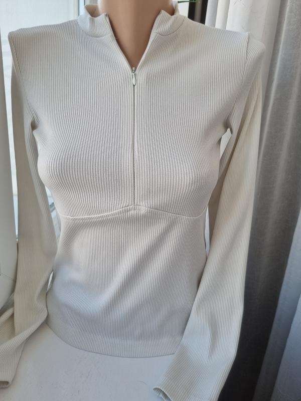 Колір айворі (ближче білого) Розмір S, можна і на ХS Склад: бавовна, поліамід, еластан Спереду на змійці Тягнеться Б/в, без дефектів