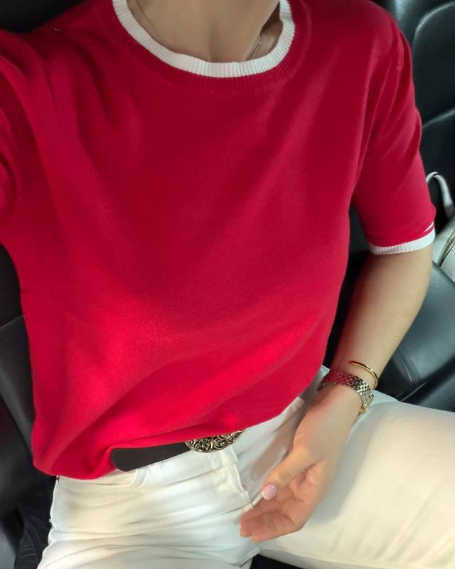 Модель 9100 опт) Базовая трикотажная футболка с контрастной окантовкой по горловине и рукавам. Мягкая, приятная к телу ткань хорошо держит форму и обеспечивает комфорт в течение всего дня. Лаконичный крой легко сочетается с джинсами, шортами или классическими брюками. Доступна в разных цветах. • Производитель Китай. Качество люкс • Состав: 50% вискоза, 28% полиэстер, 22% нейлон • Размер универсальный • Замеры: Длина 58 см, Ширина 50 см - тянется к ОГ 102 см