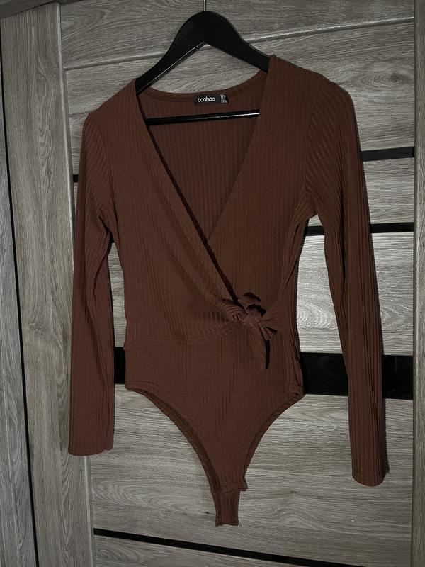 Продам Боди бренда boohoo ) На грудях завязывается на запах ) Размер С ) Замеры: Пог : 45 см Красивый шоколадный цвет )