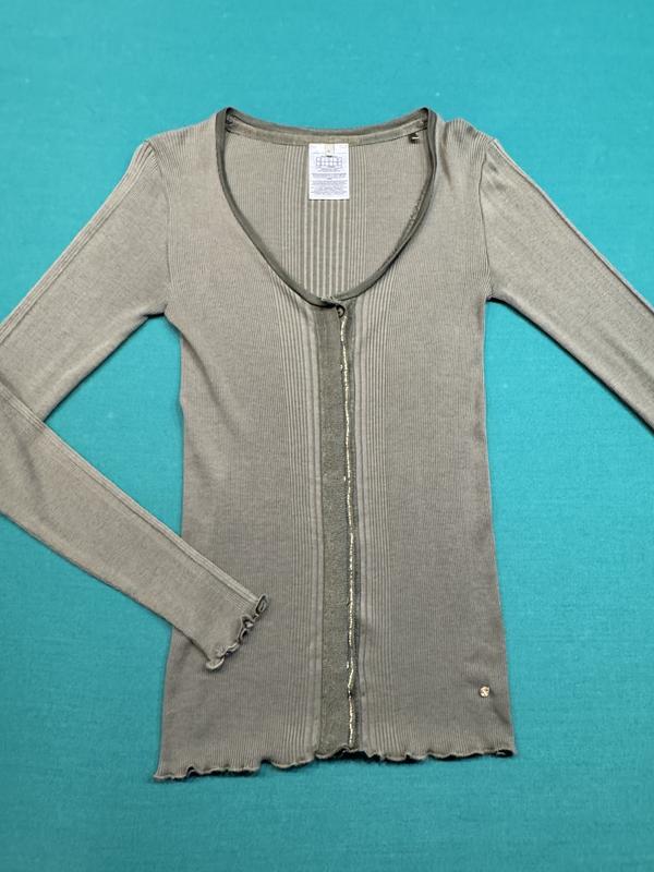 Стан нової речі. Склад: 71% шовк+29 бавовна Заміри: НО плечі-38 см НО грудей-33 см Довжина по спинці-59 см Довжина рукава-63 см Тканина тягнеться, дуже приємна на дотик. Підійде на невисоку, субтильну дівчину Елегантно виглядає, якісна, дуже приємна на дотик. Складний красивий колір оливково-зелений-хакі.(Камера не передає) На манекені дуже зеленить. Перешлю #67