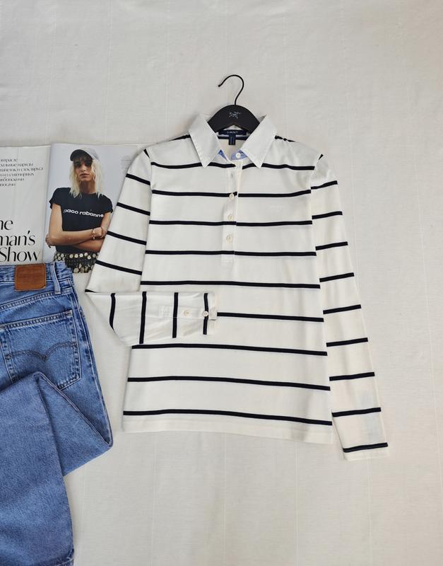 🌿лонг в смужку з комірцем бренду Gant вільного крою Розмір:S Заміри:ПОГ 50 см, довжина 61 см, рукав 61 см