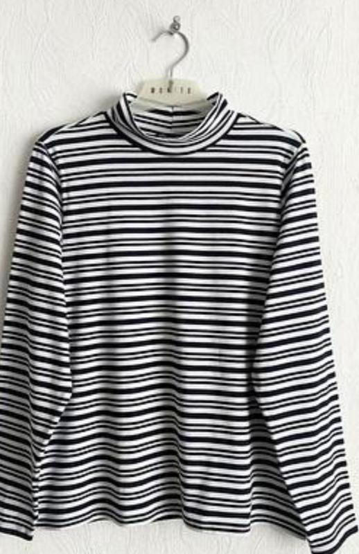 Полосатый гольф с воротником стойкой, в составе эластан, тянется. Актуальная моделька. Дл. 63. пог. 50 + 5, рукав. 61 Сток.