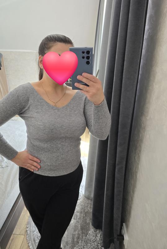 Серый лонгслив в рубчик. Размер универсальный, one size. Подойдет на с-м. (на мне фото, объем груди 100)