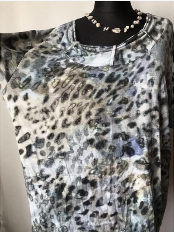 Перед замовленням обов’язково перечитайте умови, зробіть заміри, передивіться фото!! Кофта , приємна на дотик тканина- 94% віскози, 6% еластан, цікавий принт- світліше- темніше, малюнок як пір’я павича,лаконічна спина, короткий рукав, родзинка- оригінально оброблений виріз, розмір указано 48, тягнеться, орієнтуйтеся по замірах. Заміри: довж-65, пог під проймами-62, по грудях-61, пот-60, по стегон-64, по пройми рукава-27, по низу-17, довж рукава-24, ш плечей-50, заміри зроблено в спокійному стані, якщо якийсь важливий переміряю, повернення не має, відповім на всі питання, відправлю зручною вам поштою після оплати на картку Приват чи Моно, читайте в розділі» про мене», безпечна оплата і накладний платіж містекспрес, Розетка,Новою поштою. Укрпошта індивідуальне обговорення (відправки не кожен день)