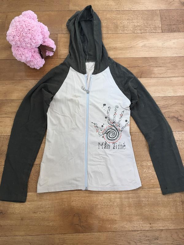 На кофте есть небольшие пятнышки и дырочка, видны на фото