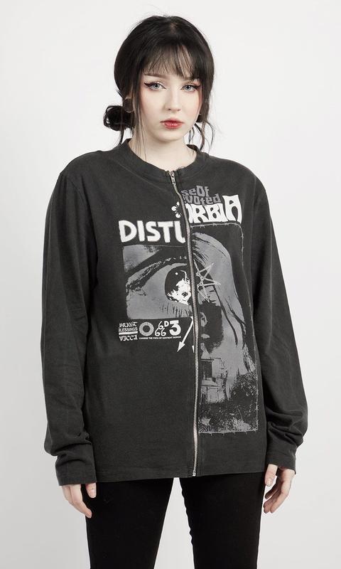 #розвантажуюсь оверсайз лонгслив на блискавці disturbia, xs, унісекс, одягнена один раз