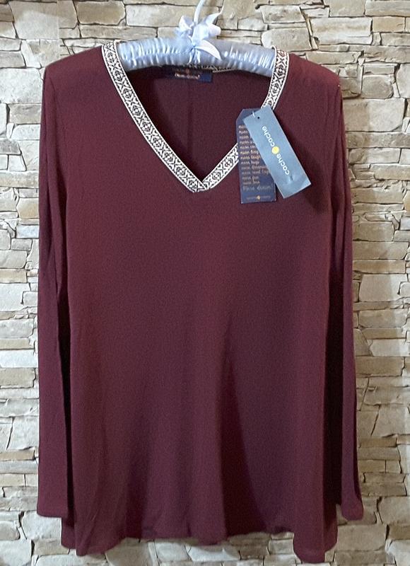Логслив винного цвета свободного кроя с рукавами , написан фр. размер S , но реально - M- L, cache cache, Франция для создания стильного образа. V- образный вырез обработан дорогостоящей эксклюзивной тесьмой ! Такой лонгслив подчеркнёт все достоинства идеальной фигуры! Изготовлено изделие из 100 % вискозы - нежное, приятное на тактильные ощущения волокно, которое имеет высочайшую яркость! Вам будет очень комфортно: воздухопроницаемая , в жаркую погоду вискозная ткань подарит чувство прохлады. Не вызывает аллергических реакций. Не накапливает статическое электричество, впитывает выделения пота, обладает высокими гигиеническими свойствами. НАДЕТ НА МАНЕКЕН С РАЗМЕРОМ XS. МАНЕКЕНУ БОЛЬШОЙ. Изделие без нюансов, всё с бирочками. Возврата нет. Замеры в спокойном состоянии! Продаю только по замерам, по городу и на дому для знакомых примерок нет! СРАВНИВАЙТЕ , ПОЖАЛУЙСТА, СВОИ ЗАМЕРЫ С ЗАМЕРАМИ НА ФОТО.