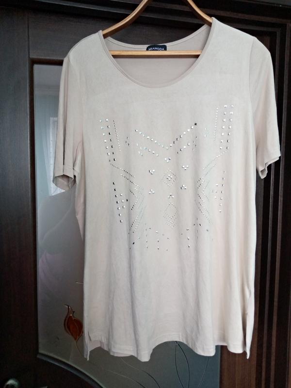 перед іде під замш,спинка трикотаж тягнеться обєм грудей 120-124 низ 120 довжина 76