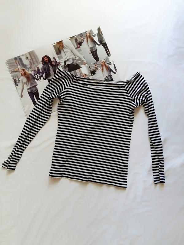 Полосатый лонгслив H&M. Максимально практичный и красивый. ⠀ ▪Ширина в груди: 40 см. ▪Длина от плеча: 53 см. ▪Размер: M. ▪Цвет: Черный, белый. ▪Материал: 98% хлопок, 2% эластан. ⠀ Цена: 130 грн.