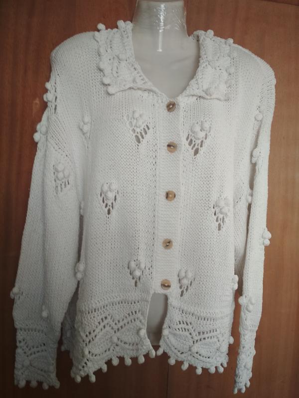 Вязанная кофта , ручная работа, Очень нарядная .Пряжа 100 / хлопок. ПОГ - 57 ПОБ -58 Длина -63 Рукава : длина -52 Ширина -26 Ширина -12 (в запястье ).
