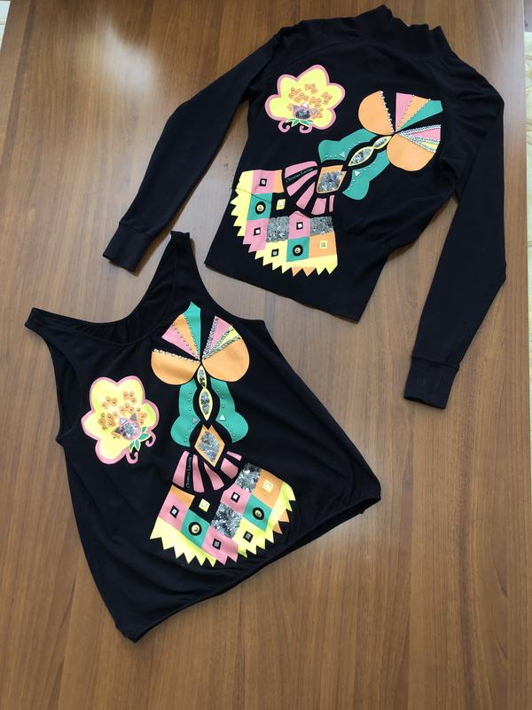 ✔️Французский бренд Christian Lacroix ✔️супер комплект: майка и бомбер ✔️аппликация, паетки и бисер ✔️внизу широкая эластичная резинка, подчеркивающая талию ✔️подходит под любые джинсы, брюки, юбки и тд ✔️приятнейший трикотаж, 95💯коттон ✔️