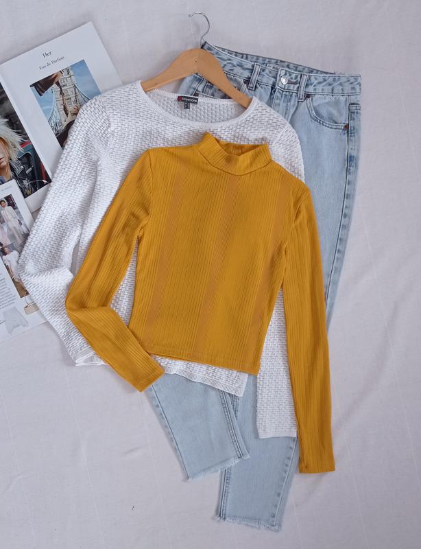 лонгслів зі стойкою від Divided в гірчичному кольорі, тканина трикотаж добре тягнеться, розмір вказано XS, ширина плечей 38 см, ПО грудей 43 см, довжина 57 см
