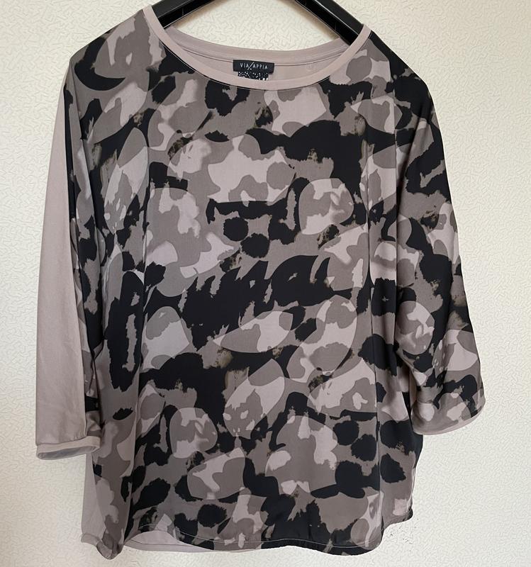 Ефектний лонгслив вільного крою зі спущеним рукавом 3/4. Розмір: 40. Довжина 65 см, п/о стегон 55 см Склад: поліестер (перед) / мода і еластан (спинка). Приємний до тіла.