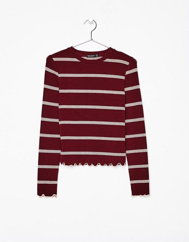 Женская бордовая кофта лонгслив с рюшами