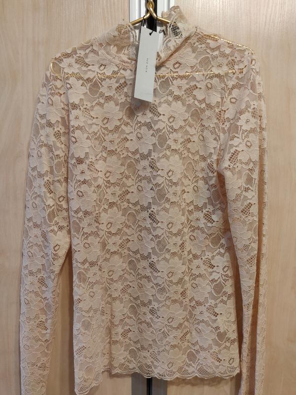 НОВАЯ Стильная, женственная, романтичная кружевная кофточка гольфик под горло Идеальное дополнение романтичного образа цвет молочно бежевый запасная пуговица в наличии Высокое качество кружева