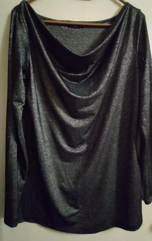 Лонгслив 46-48 р-ру., красивого темно-серебристого цвета, воротник с напуском, ткань тонкая, очень приятная на ощупь.Реальный цвет фото 5,6. Замеры: плечи 41 см.; рукав 66 см.; об груди 54 см; длина изделия 71 см. Состав: вискоза,эластан, металлизированное волокно. Перешлю после 100% оплаты на карточку. Отправлю Новой или Укр.почтой. По дополнительной информации обратитесь. Смотрите мое другое объявления.