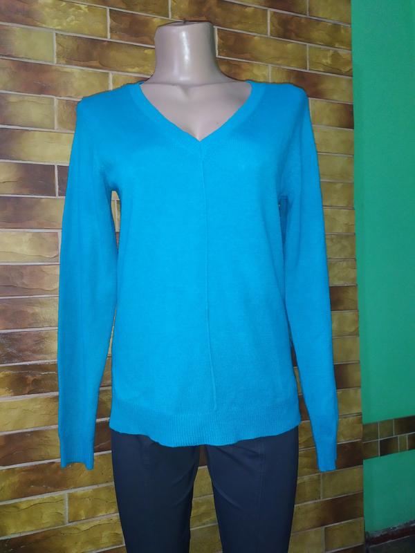 Красивый лёгкий свитерок, ярко голубого цвета, прямого кроя, по бокам вырезы. Замеры: Плечи - 40см ПОГ - 45см ПОТ - 45см ПОБ - 45см Рукав - 63 см длина разрезов - 10см Длина общ. - 58см 💯-акрил