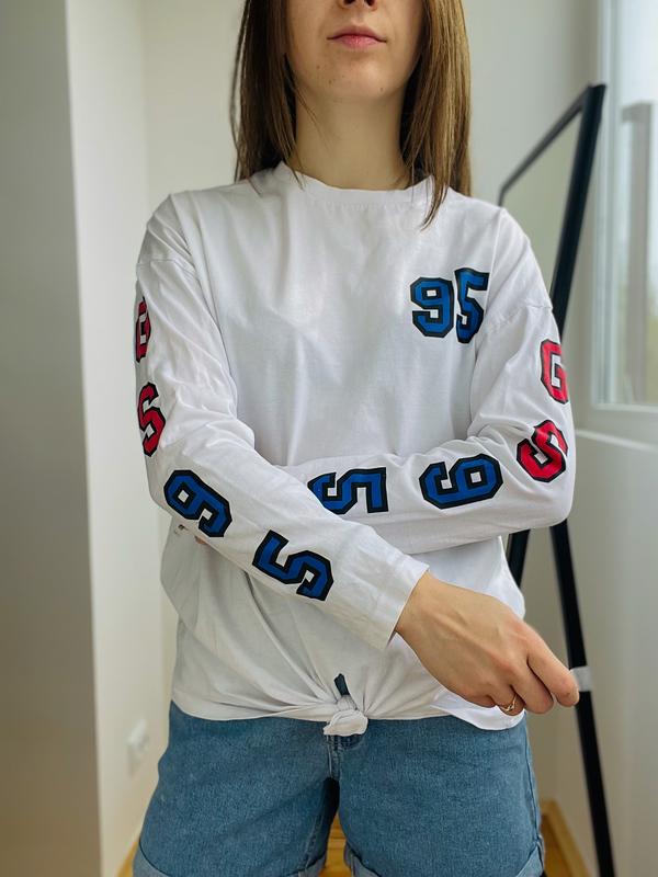 Білий лонгслив з принтом FB sister Розмір S Made in Bangladesh Довжина виробу 69 см, рукав від шва 45 см ПОГ 52 см, ПоТ 46 см 100% бавовна Стан ідеальний 10/10, білосніжна, без плям і дефектів
