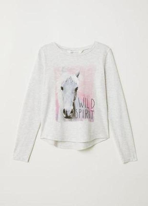 Нежный лонгслив с изображением лошади. Ткань- трикотаж,лёгкий,мягкий,тянется. Из молодежной коллекции h&m. В наличии размер.170см. что соответствует женскому m на ог 88 см.