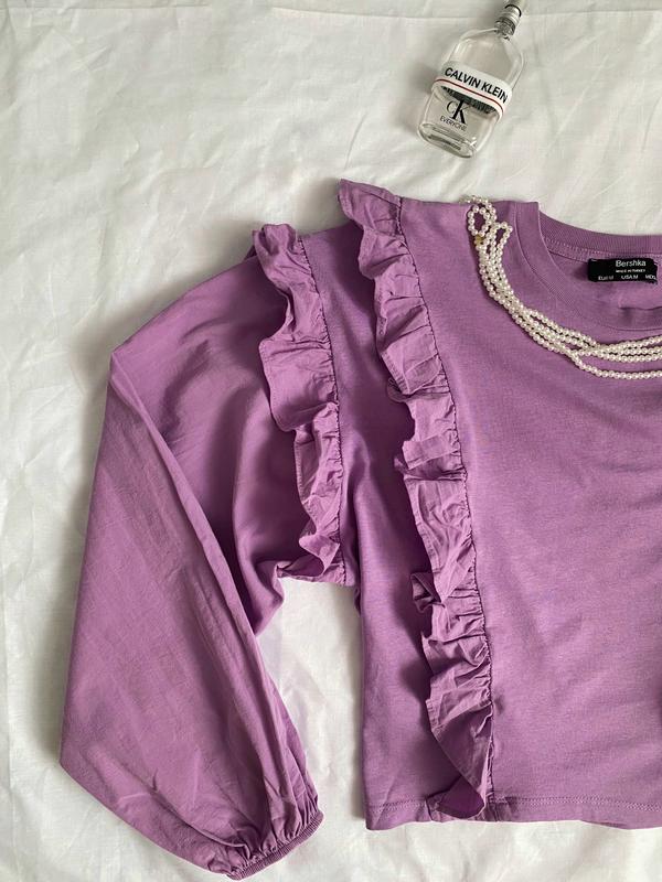 Лавандовий лонгслів з об'єднання ємними рукавами 💖 Розмір: S-M