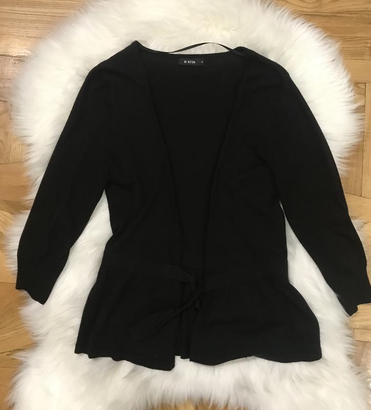 Кардиган, кофта O stin з "баскою" можна носити розстебнутою, можна зав'язувати на поясі стрічка зав'язується спереду на поясі трикотажна у язка легенький, зручний, універсальний в ідеальному стані