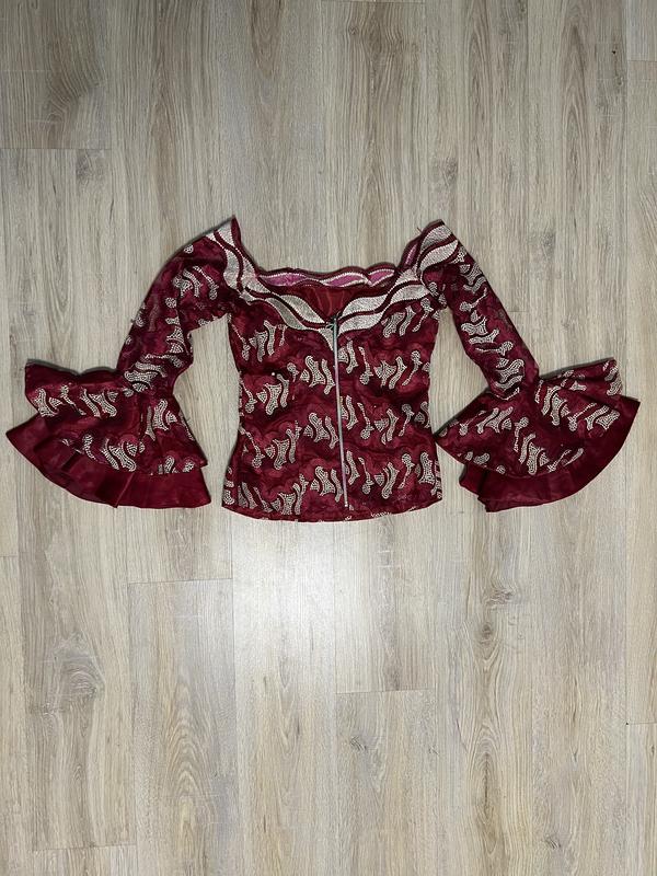 Прикольний топ , підійде для фотосесій. Недоліки всі ж на фото , трохи вилазять нитки. Розмір S-M