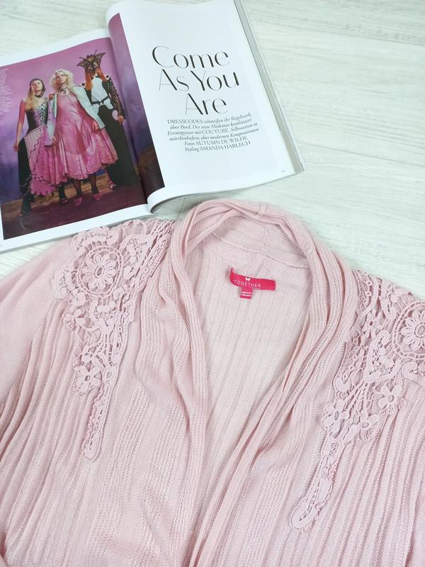 Кофта накидка Together Размер: one size Замеры: Длина изделия: 117 см Длина рукава: 70 см Плечи: 47 см Подписывайтесь на наш магазин, чтобы не потерять. У нас ежедневные обновления, достойные вашего внимания. В нашем магазине вы найдете качественные товары по ЕС, Англии и США по адекватной цене. 6034 Арт. 31813