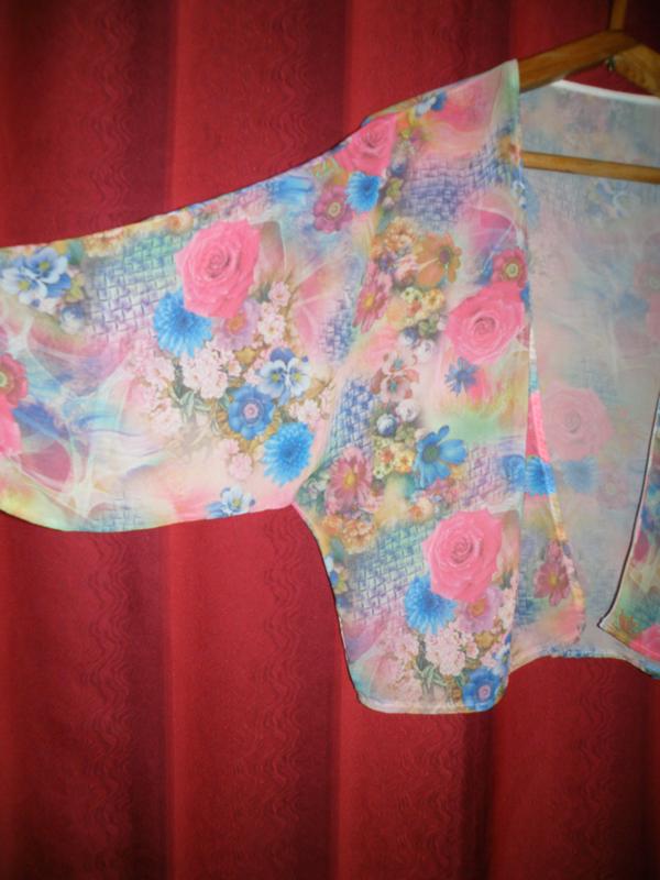 легкая, летняя накидка ПОГ - 70см (летучая мышь), ПО низа - 53см, длина - 52см, дл.рукава от горловины - 51см, ПО рукава внизу -18см, ПО в районе проймы -28см