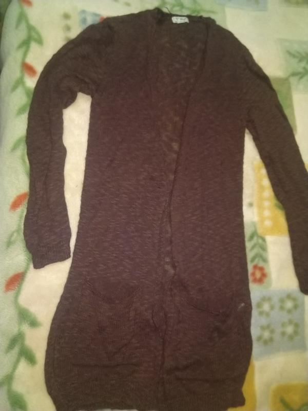 Очень красивая фирменная орегинальная кофта, накидка, без пуговиц, легкая,для летних вечеров, очень красиво смотрится, длина -82см, полу обхват груди -40см длинна рукава от плеча -61см, внимательно сверьте свои размеры.
