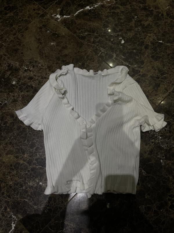 Легкая летняя кофточка в рубчик Размер подойдет на Xs-S-M Белый яркий цвет Без бирки