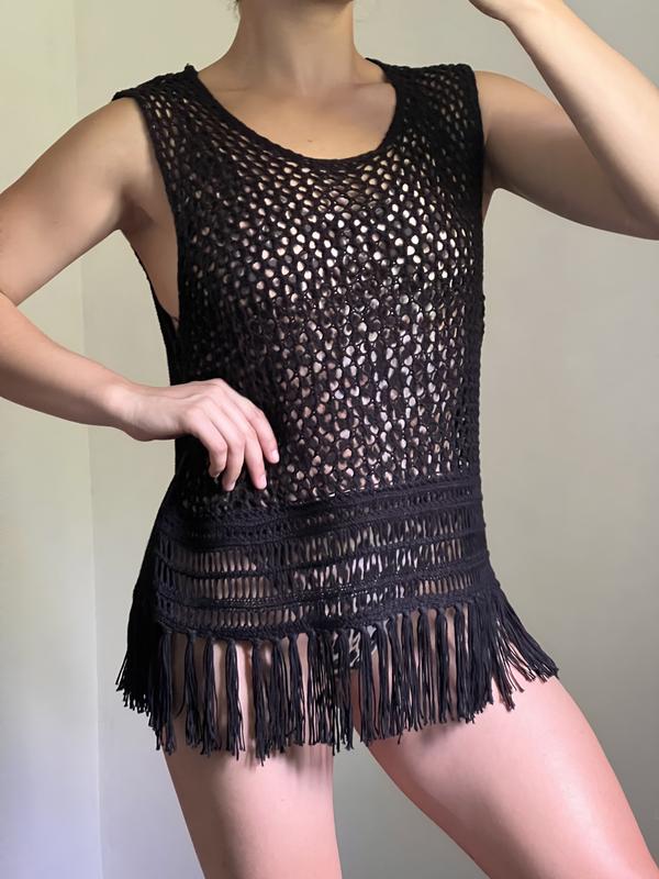 Чорна в'язана накидка на купальник чи на інший низ. Розмір буде на М, Л, ХЛ.