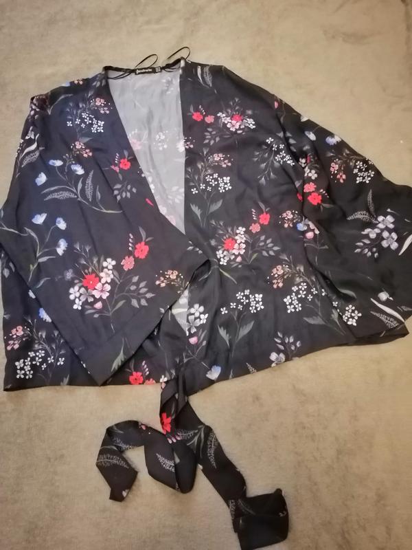 Легкая накидка из очень приятной ткани. На завязках снизу, свободного кроя с широкими рукавами.